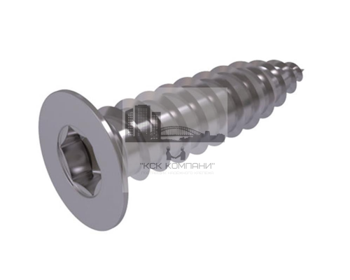 Саморез с потайной головкой ISO 14586 полностью соответствует международным стандартам. Метиз производится из нержавеющей стали марки A2. Шуруп ISO 14586 устойчив к атмосферным воздействиям, невосприимчив к щелочным растворам и кислотам.