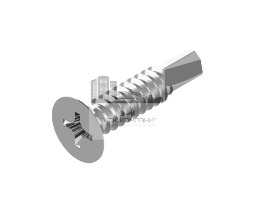Винт самонарезающий DIN 7504 P с потайной головкой, шлицем Phillips и сверлом на конце из нержавеющей стали А2.