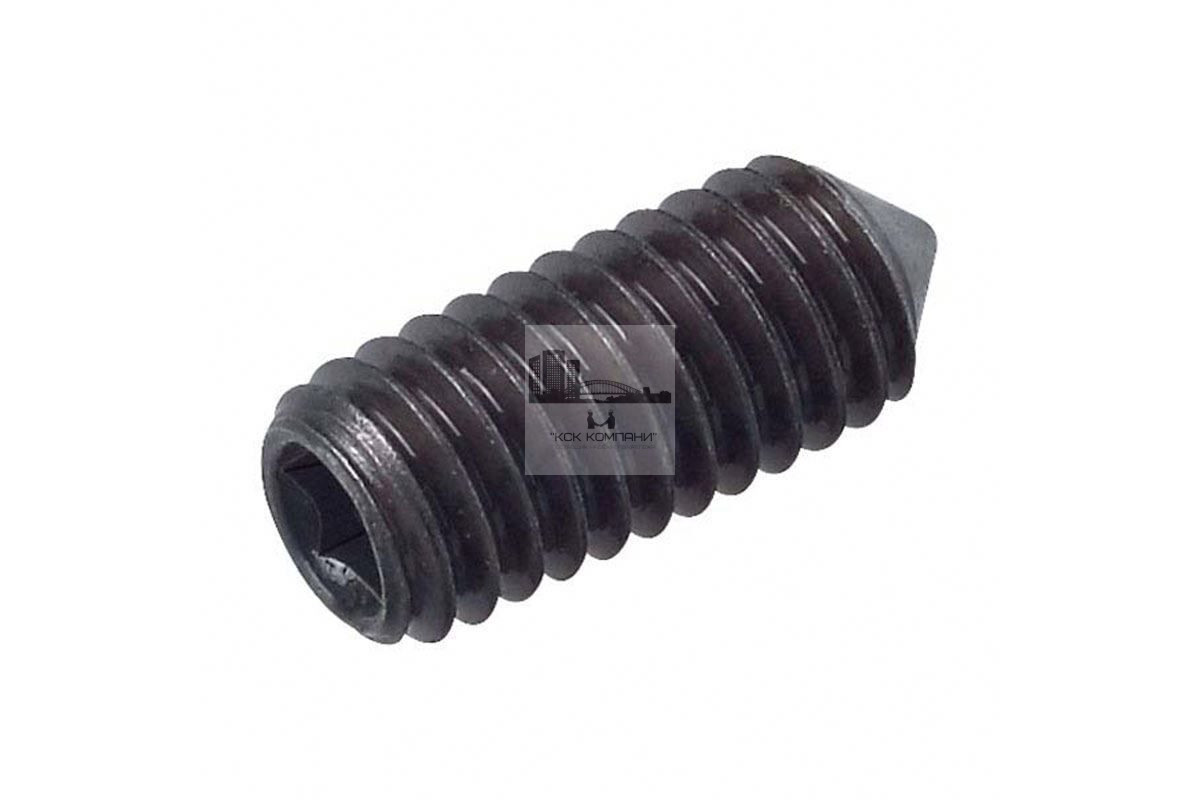 Винт установочный DIN 914 стопорный с внутренним шестигранником и коническим концом из оксидированной стали, класс прочности 12.9