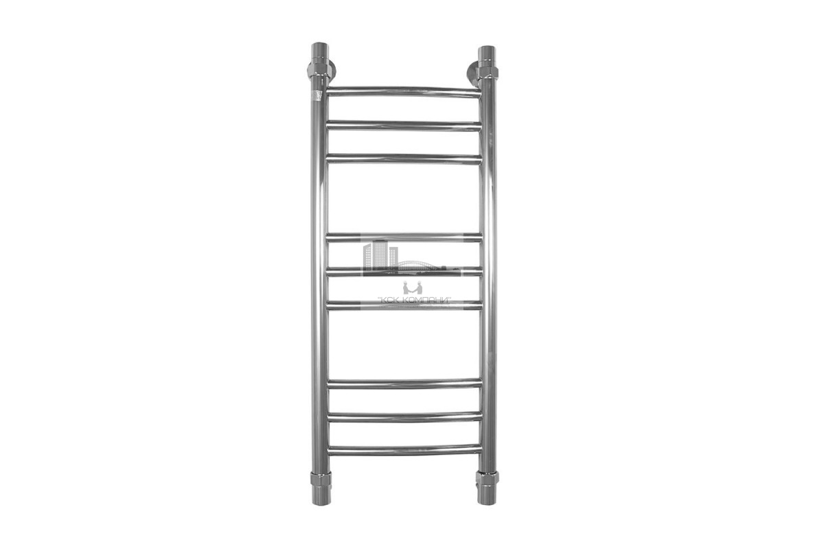Полотенцесушитель изготовлен из высококачественной импортной пищевой нержавеющей стали марки AISI 304 (08Х18Н10). Поверхность обработана методом электроплазменной полировки, не тускнеет и устойчива к небольшим механическим повреждениям. Сварка швов выполнена по специальной технологии TIG по международному стандарту EN 10217-7. Полотенцесушитель испытан при давлении 50 атм, составляющая его труба — 150 атм, благодаря чему имеет большой запас прочности.