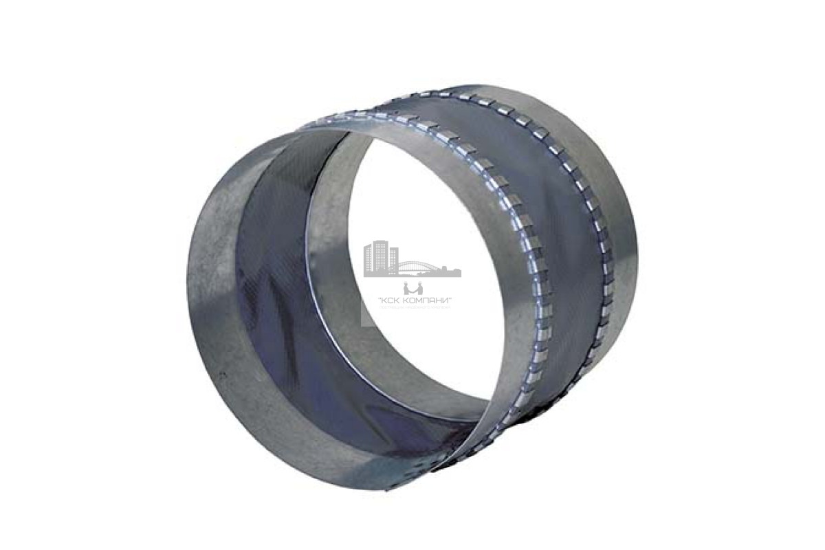 Корпус гибкой вставки изготовлен из оцинкованной стали с запрессованной в середине полоской полихлорвинила.