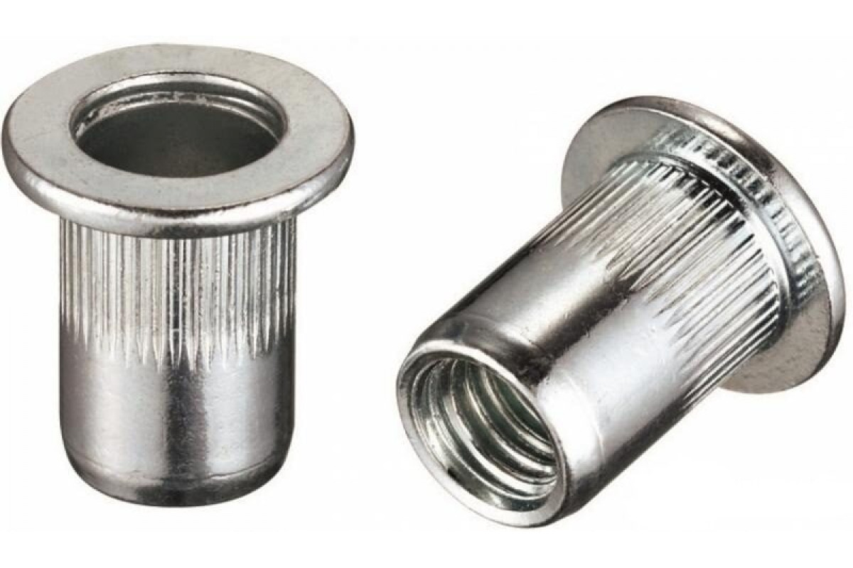 Особенности: Стальная заклепка имеет вид цилиндра, с резьбой внутри для крепежа и насечками снаружи, дающими более надежную фиксацию. Цилиндрический бортик предназначен для сохранения дистанции заклепки и фиксируемых частей. |