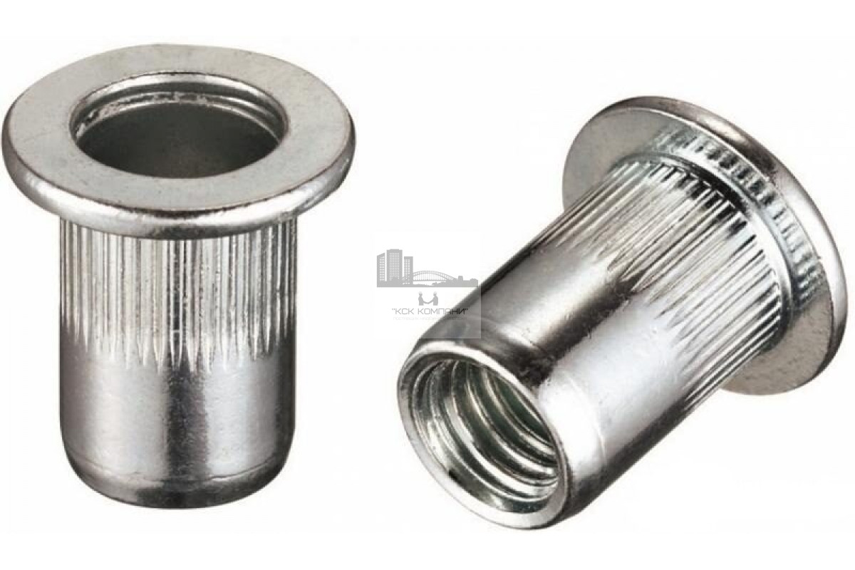 Особенности: Стальная заклепка имеет вид цилиндра, с резьбой внутри для крепежа и насечками снаружи, дающими более надежную фиксацию. Цилиндрический бортик предназначен для сохранения дистанции заклепки и фиксируемых частей. |