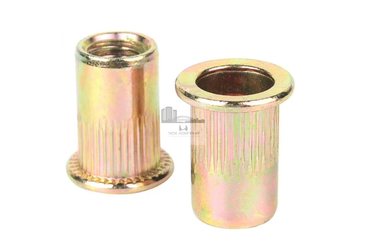 Особенности: Стальная заклепка имеет вид цилиндра, с резьбой внутри для крепежа и насечками снаружи, дающими более надежную фиксацию. Цилиндрический бортик предназначен для сохранения дистанции заклепки и фиксируемых частей. |