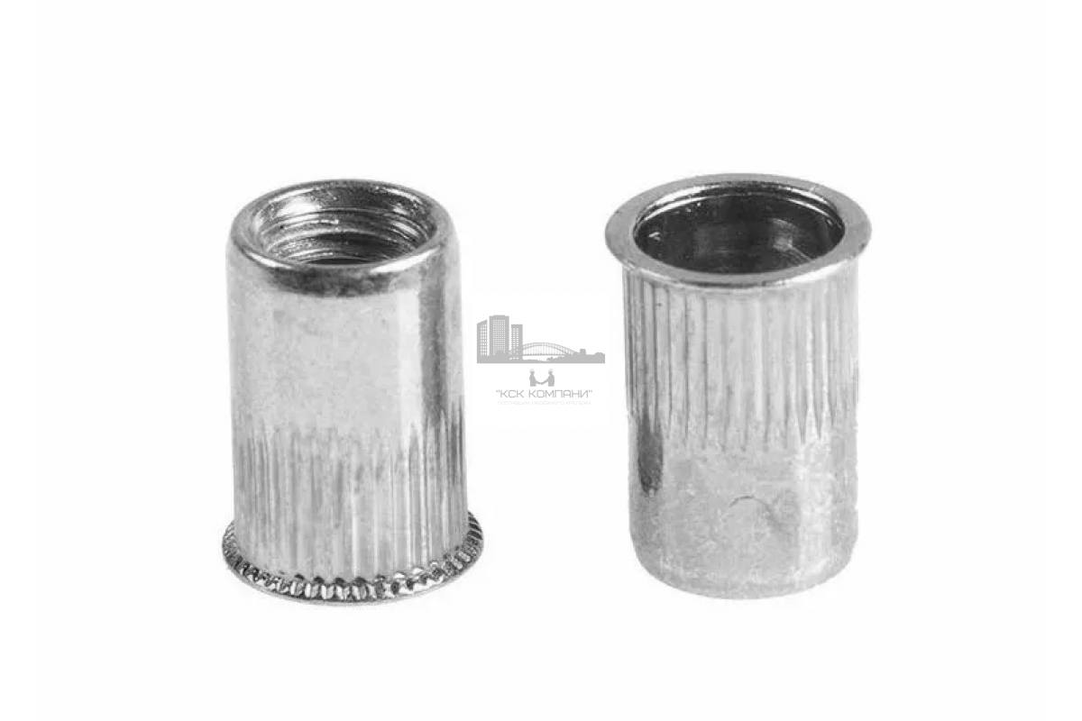 Особенности: Крепеж цилиндрической формы со сквозным резьбовым отверстием. На внешней стороне изделия находится уменьшенный бортик цилиндрической формы, он необходим для сохранения расстояния между прикрепляемой поверхностью и заклепкой, уменьшенные размеры, делают его практически незаметным. Насечки, на внешней стороне гайки способствуют ее прочному закреплению и препятствуют проворачиванию. |