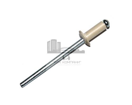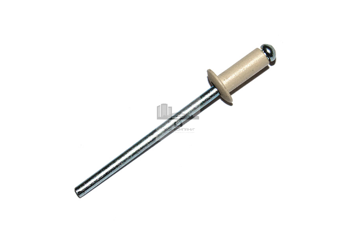 Заклепка вытяжная цвета "Слоновая кость" RAL 1014 выполнена из алюминия с защитным покрытием, что обеспечивает стойкость к коррозии, позволяет использовать метиз в условиях повышенной влажности. Монтаж крепежа осуществляется при помощи заклепочника. Этот инструмент позволяет использовать крепежный элемент для тонколистовых листов.
