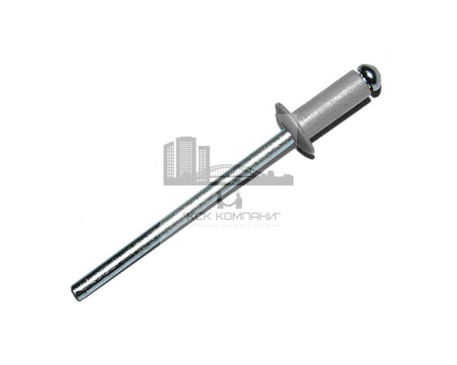 Заклепка вытяжная серого цвета RAL 7004 выполнена из алюминия с защитным покрытием, что обеспечивает стойкость к коррозии, позволяет использовать метиз в условиях повышенной влажности. Монтаж крепежа осуществляется при помощи заклепочника. Этот инструмент позволяет использовать крепежный элемент для тонколистовых листов.