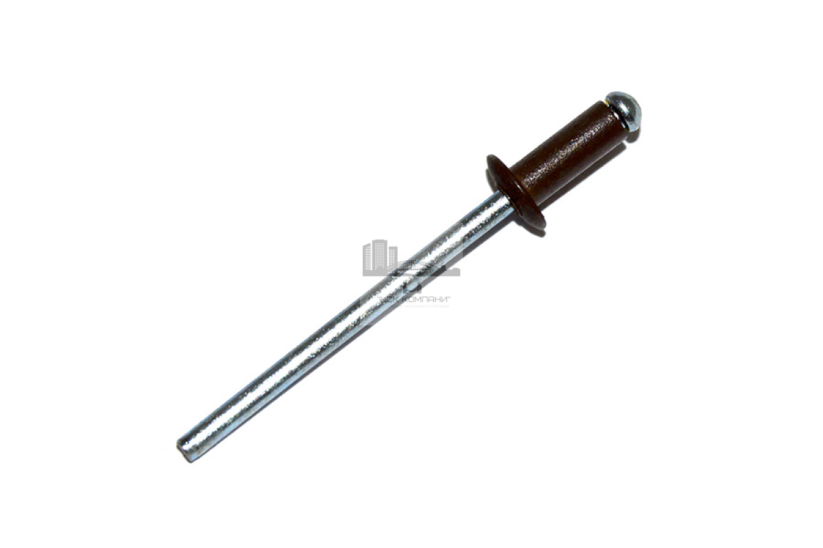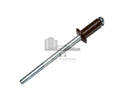 Заклепка вытяжная цвета "Шоколадно коричневый" RAL 8017 выполнена из алюминия с защитным покрытием, что обеспечивает стойкость к коррозии, позволяет использовать метиз в условиях повышенной влажности. Монтаж крепежа осуществляется при помощи заклепочника. Этот инструмент позволяет использовать крепежный элемент для тонколистовых листов.