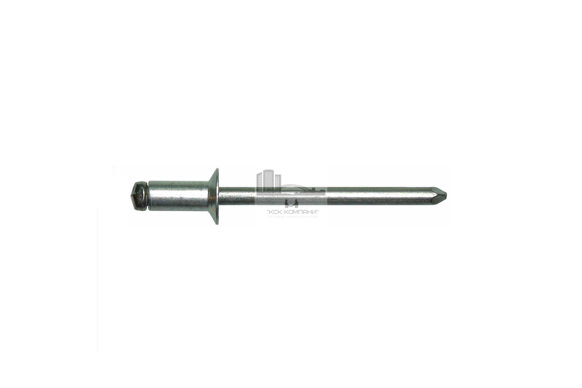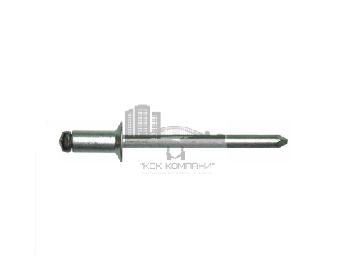 Размеры заклепки вытяжной из стали DIN 7337 варьируются от 3.2 до 9.5, толщина зажима может достигать 20 мм. Состоит крепёжный элемент из трубчатого корпуса и стержня, имеющего определённый предел разрушений. Монтаж выполняется в заранее подготовленное отверстие.