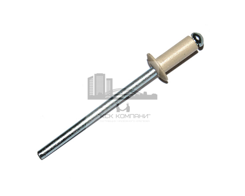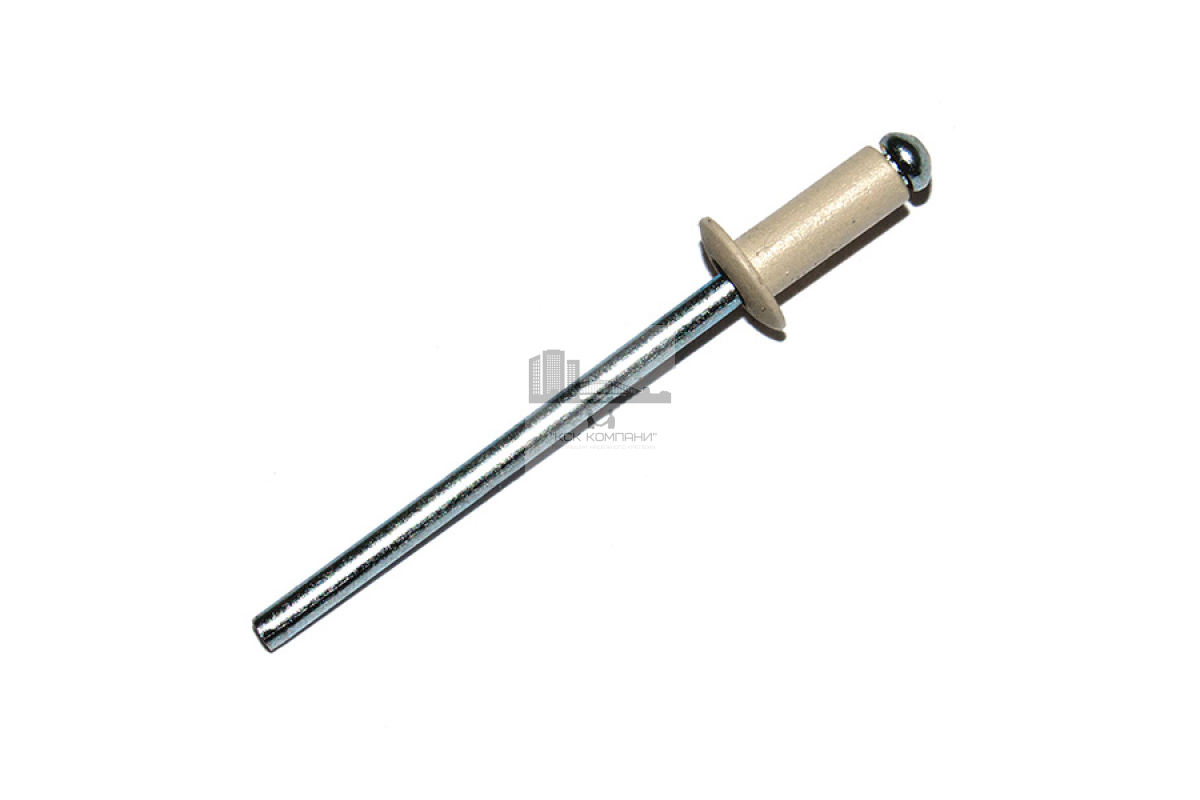 Заклепка вытяжная цвета "Светлая слоновая кость" RAL 1015 выполнена из алюминия с защитным покрытием, что обеспечивает стойкость к коррозии, позволяет использовать метиз в условиях повышенной влажности. Монтаж крепежа осуществляется при помощи заклепочника. Этот инструмент позволяет использовать крепежный элемент для тонколистовых листов.