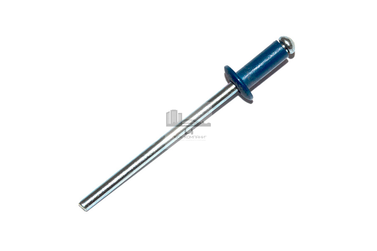 Заклепка вытяжная цвета "Сигнальный синий" RAL 5005 выполнена из алюминия с защитным покрытием, что обеспечивает стойкость к коррозии, позволяет использовать метиз в условиях повышенной влажности. Монтаж крепежа осуществляется при помощи заклепочника. Этот инструмент позволяет использовать крепежный элемент для тонколистовых листов.