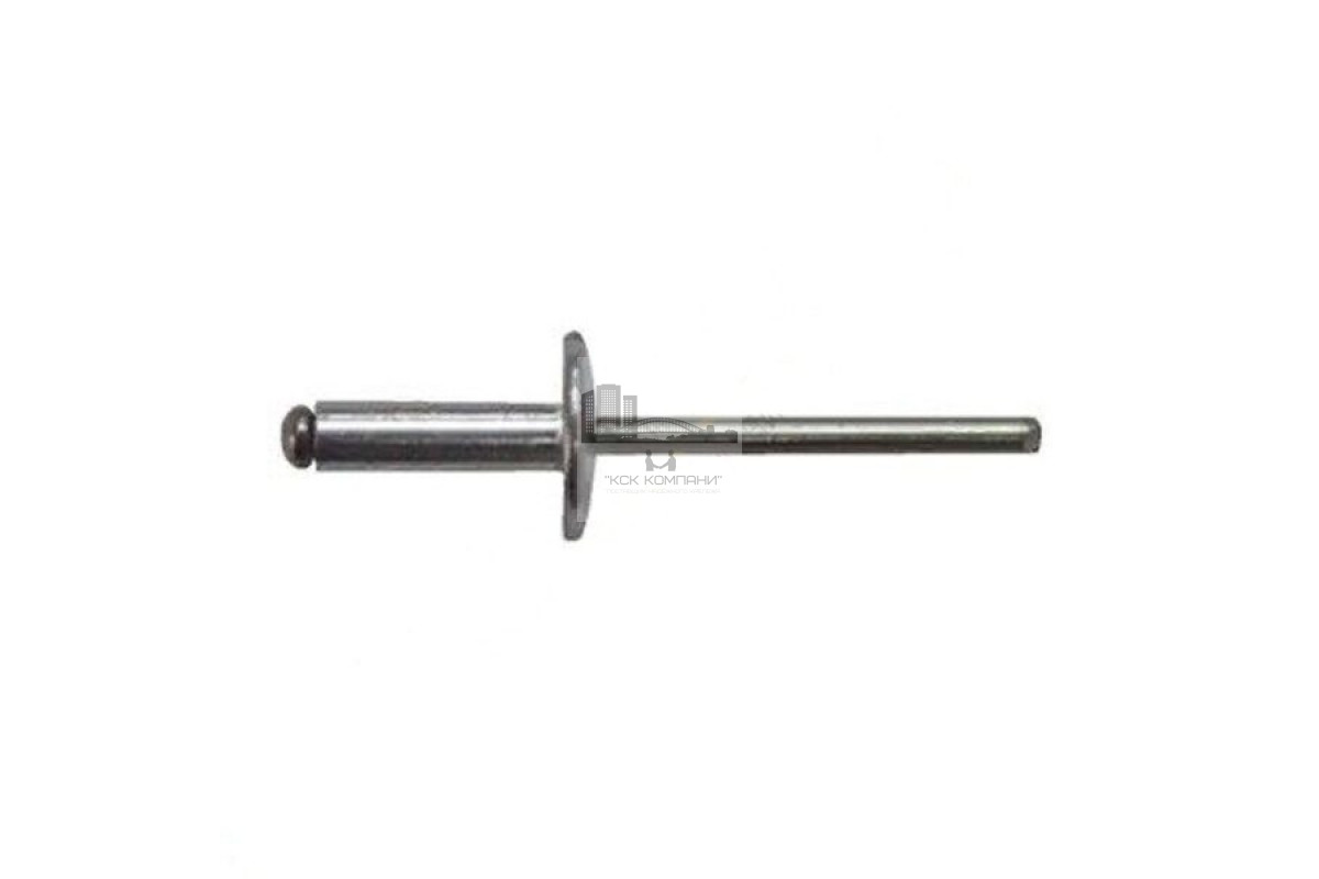 Особенности: Изделие выполнено со стержнем из стали и алюминиевого тела заклепки. Устанавливается при помощи специального клепочного инструмента. Тело крепежа имеет выпуклую шляпку и увеличенный бортик, после фиксации полностью перекрывает установочное отверстие. Стальной стержень изделия отрывается во время установки при достижении инструментом максимального тягового усилия. |